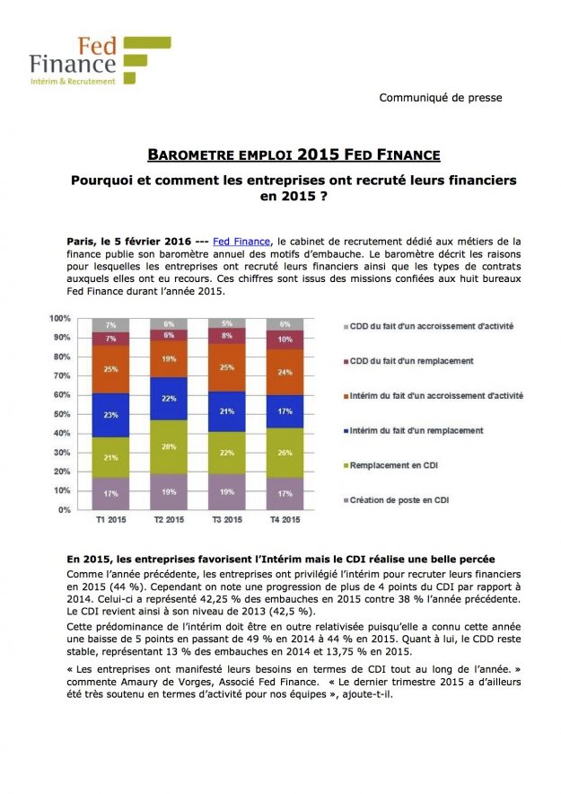 Pourquoi et comment les entreprises ont recruté leurs financiers en 2015 ? 2016, Communiqués de presse, Groupe FEDPar Corinne5 février 2016Voir et télécharger le PDF