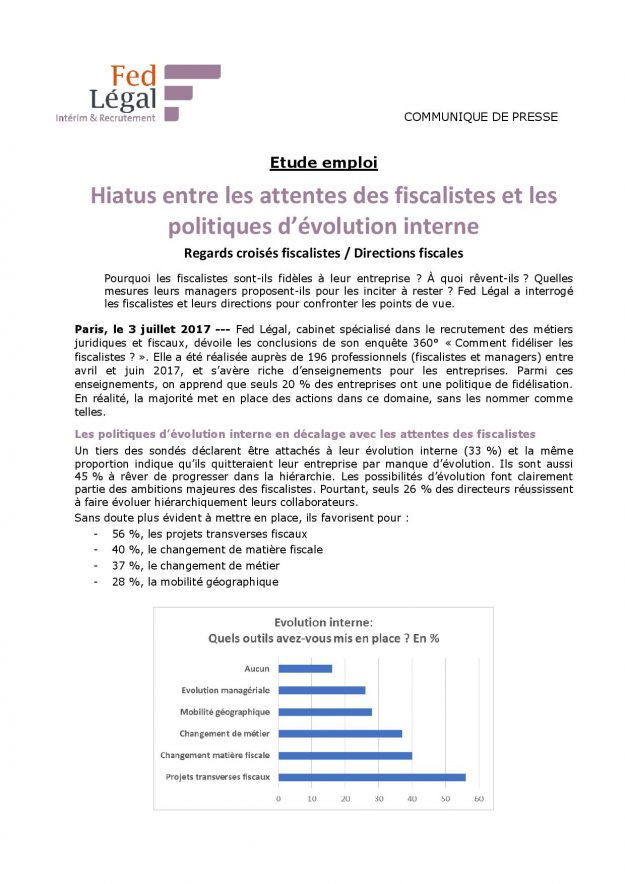 Hiatus entre les attentes des fiscalistes et les politiques d’évolution interne 2017, Communiqués de presse, Groupe FEDPar Corinne3 juillet 2017Voir et télécharger le PDF