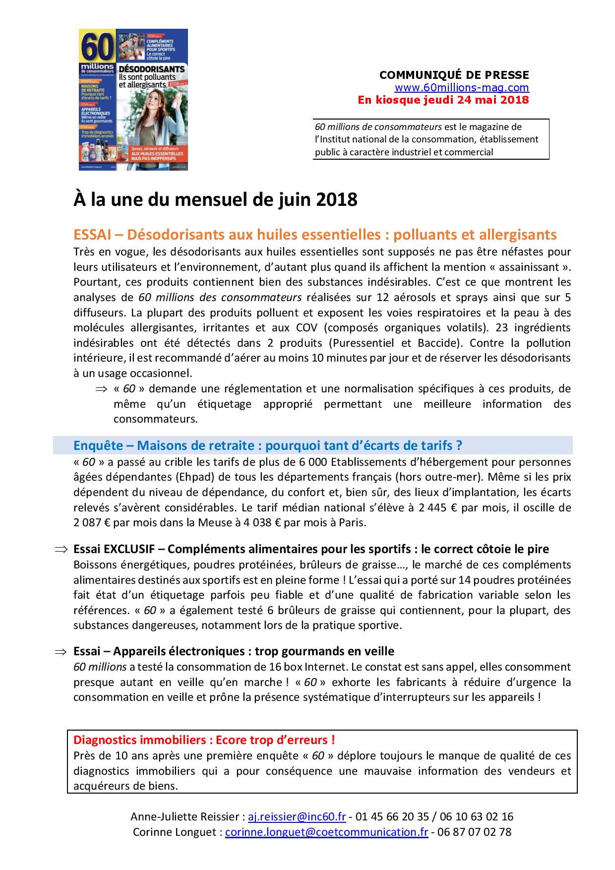 Catégorie  2018, 60 Millions de consommateurs, Communiqués de presse24 mai 2018