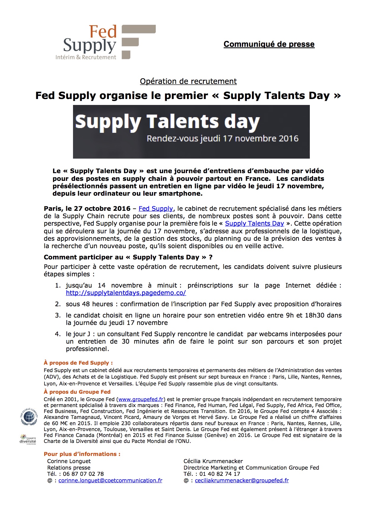 Catégorie  2016, Communiqués de presse, Groupe FED27 octobre 2016